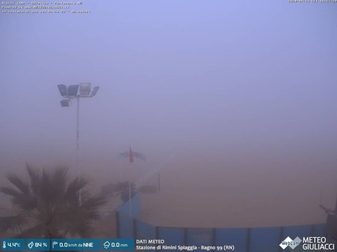 In compenso però dal tardo pomeriggio di oggi e per i prossimi giorni saranno in aumento le coperture basse, in sintesi foschie e banchi di nebbia su buona parte del territorio riminese.